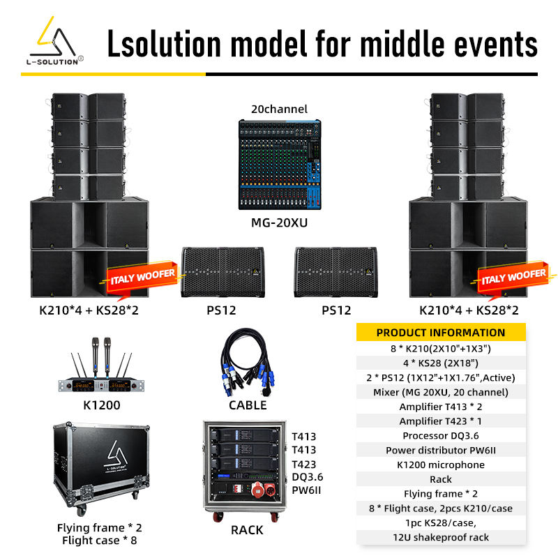 Système Line Array Passif Double 10 Pouces L-Solution K210 900W 2400W Subwoofer Aimant Néodyme 8ohm Solution Audio Puissante