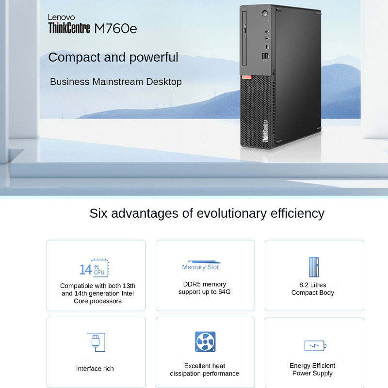 L e n o v o Think Centre M760e Inter Core I5-14500 8 Go DDR4 512 Go SSD 8.2L PC professionnel ordinateur de bureau