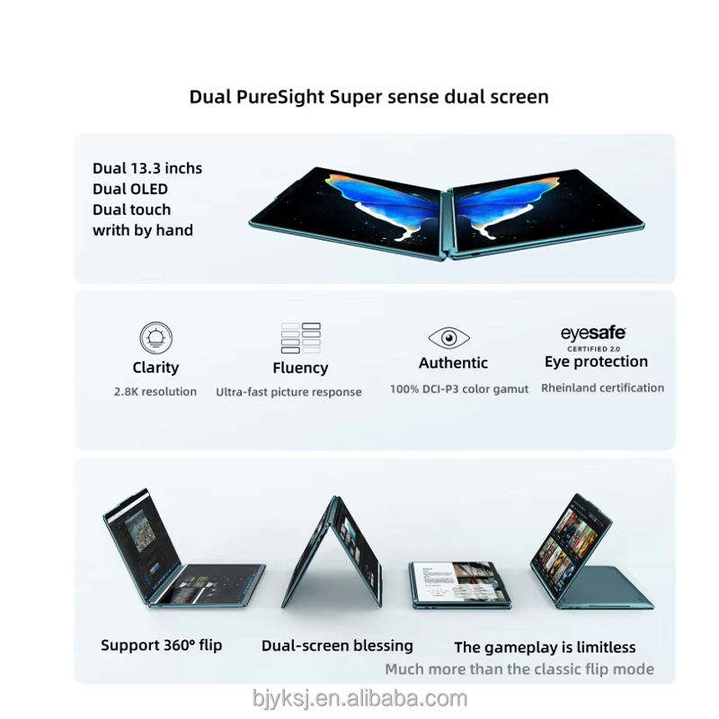 Ordinateur portable à rabat L e n o v o Y O G A Book 9i Inter Core I7-1355U 16 Go 1 To OL ED 13.3 pouces 2.8K double écran 360