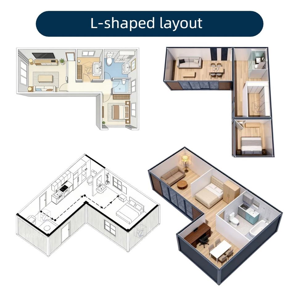 Maison modulaire préfabriquée en forme de L, maison modulaire, maisons préfabriquées, kit de maisonnette pour villa d'hébergement Rayzen