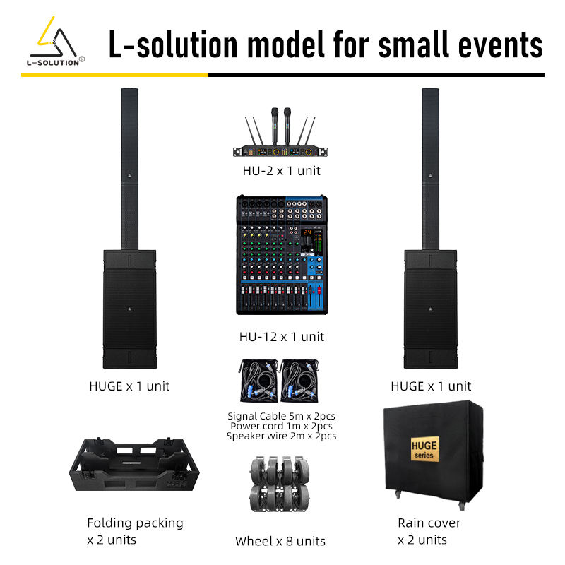 Système de haut-parleurs colonne actifs L-solution Huge Series 2500W Max SPL140dB avec néodyme, audio haute résolution, son professionnel 3 canaux