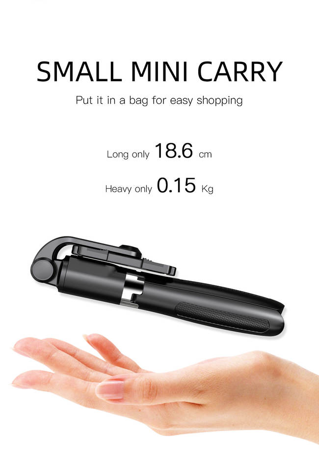 Perche à selfie L01S avec trépied, support de téléphone rotatif à 360°, idéale pour les voyages