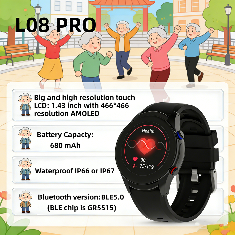 Montre connectée L08 PRO 1,43" AMOLED, batterie 680 mAh, IP66/IP67, BLE5.0, suivi de santé