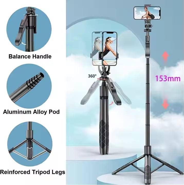 Fonction:Monopode + Trépied + Perche à selfie + Télécommande Bluetooth + Support pour caméra d'action