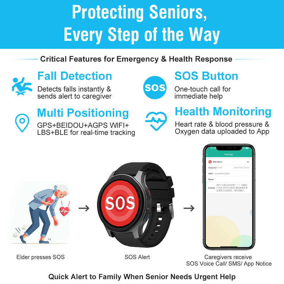 L18 grand écran tactile de détection de chute de téléphone SOS appel d'urgence double appel vocal 2G 3G 4G connectivité Gel de silice IP67 calendrier IPS