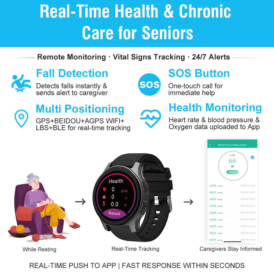 L18 Smart Elder Montre Étanche IP67 PPG Capteur Sécurité Seniors Sang Diabète Taux Surveillance SOS Bouton Montre pour Senior