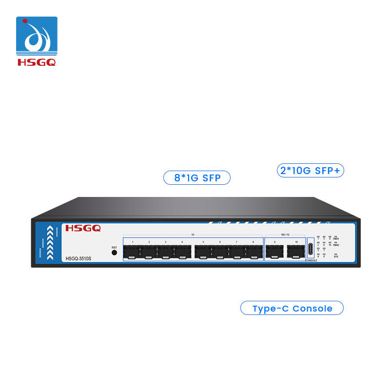 Commutateur géré L2+ HSGQ 8 ports Gigabit SFP 2 ports 10G SFP+ 56 Gbit/s 20W faible consommation Type-C Console VLAN pour réseau résidentiel