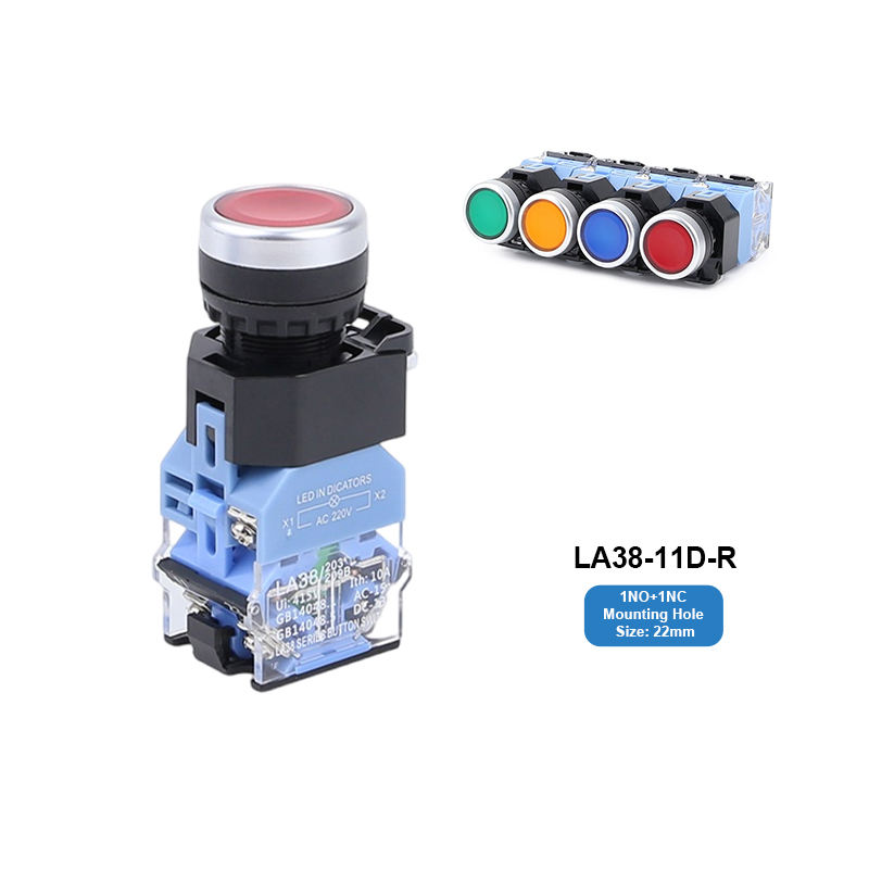LA38-11D-R interrupteurs à bouton-poussoir lumineux à ressort, verrouillage momentané, verrouillage plat, 1No 1Nc, arrêt d'urgence, 22mm, Led