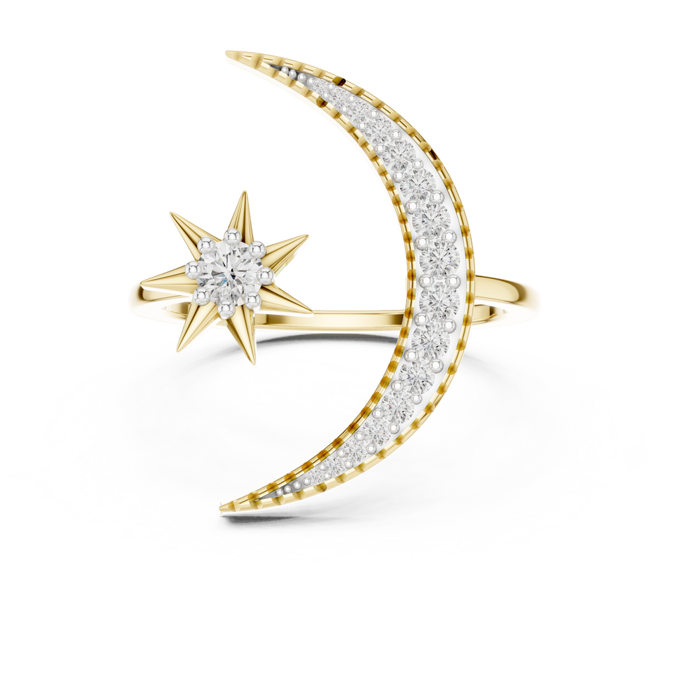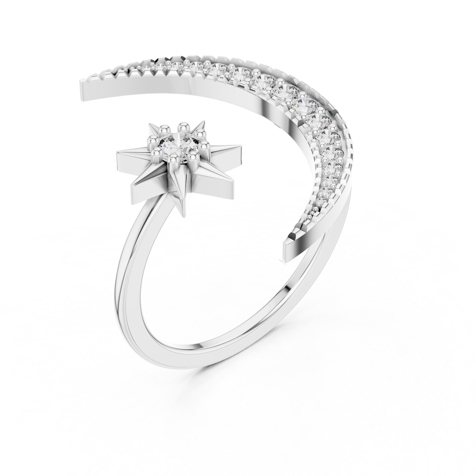 Ensemble de bagues lune et étoile en diamant de culture, or blanc 18 carats plaqué rhodium, pour mariage, fiançailles, fête, cadeau pour femme