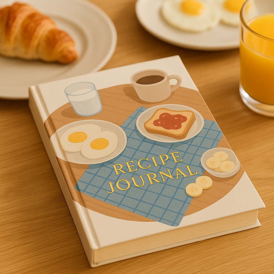 LABON Journal de recettes du petit déjeuner Cahier de recettes en feuille d'or à couverture rigide avec des œufs grillés Banane Café et lait