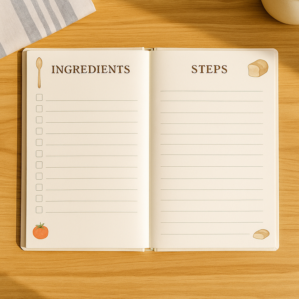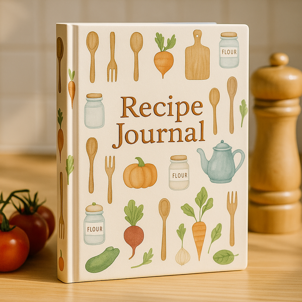 Journal de recettes de cuisine confortable LABON avec illustrations de légumes et d'ustensiles en aquarelle, planificateur alimentaire relié, carnet de notes, cadeau