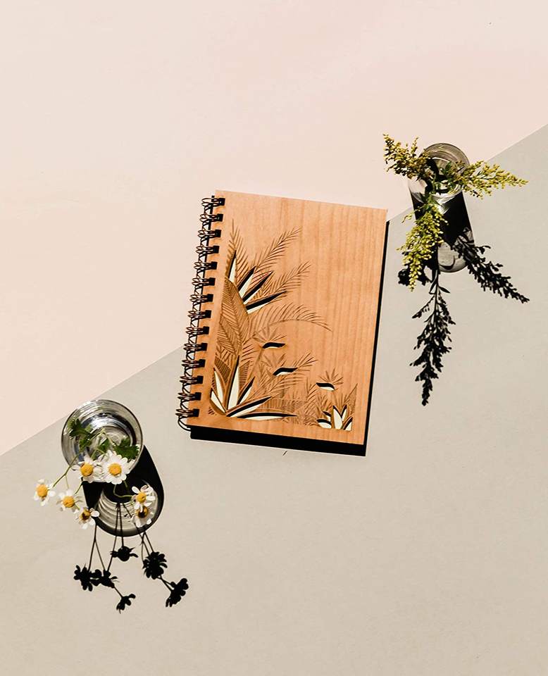 Journal de planification en bois recyclé écologique LABON, relié en spirale, pages vierges, couverture en bois, cadeaux
