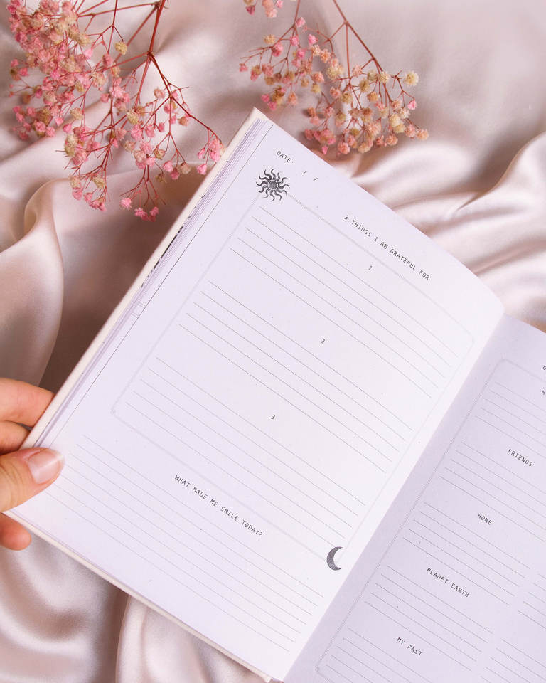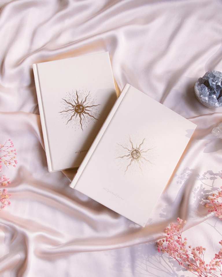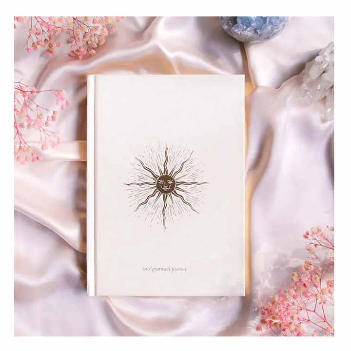 LABON Couverture en lin à feuille d'or Design personnalisé Habit Tracker Manifest and Sol Gratitude Hardcover Journal A5 Linen Sun Notebook