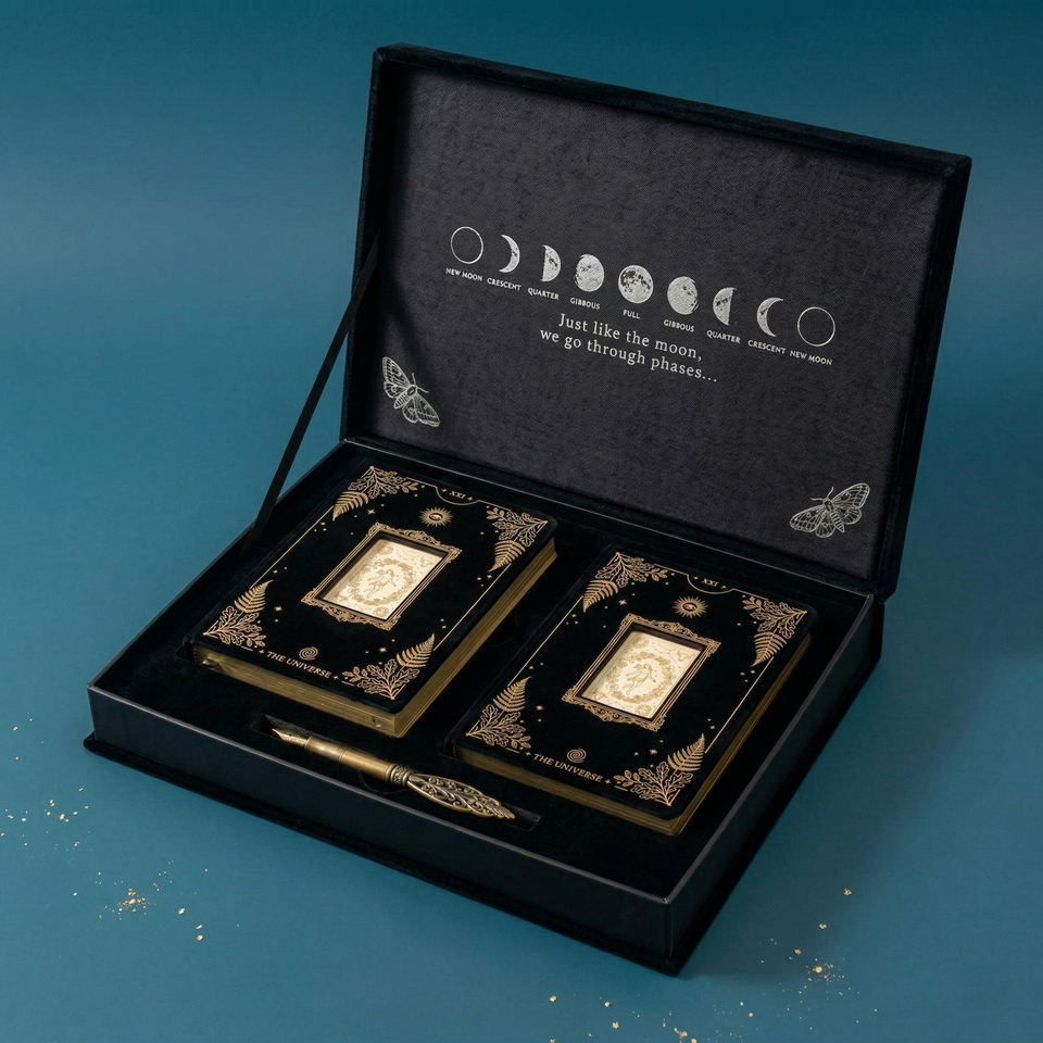 Carnet LABON Gothique en Velours Noir A5, Couverture Rigide, Univers Tarot, Bords Dorés, Cadre Découpé, Cadeau Mystique pour Amoureux des Sorcières