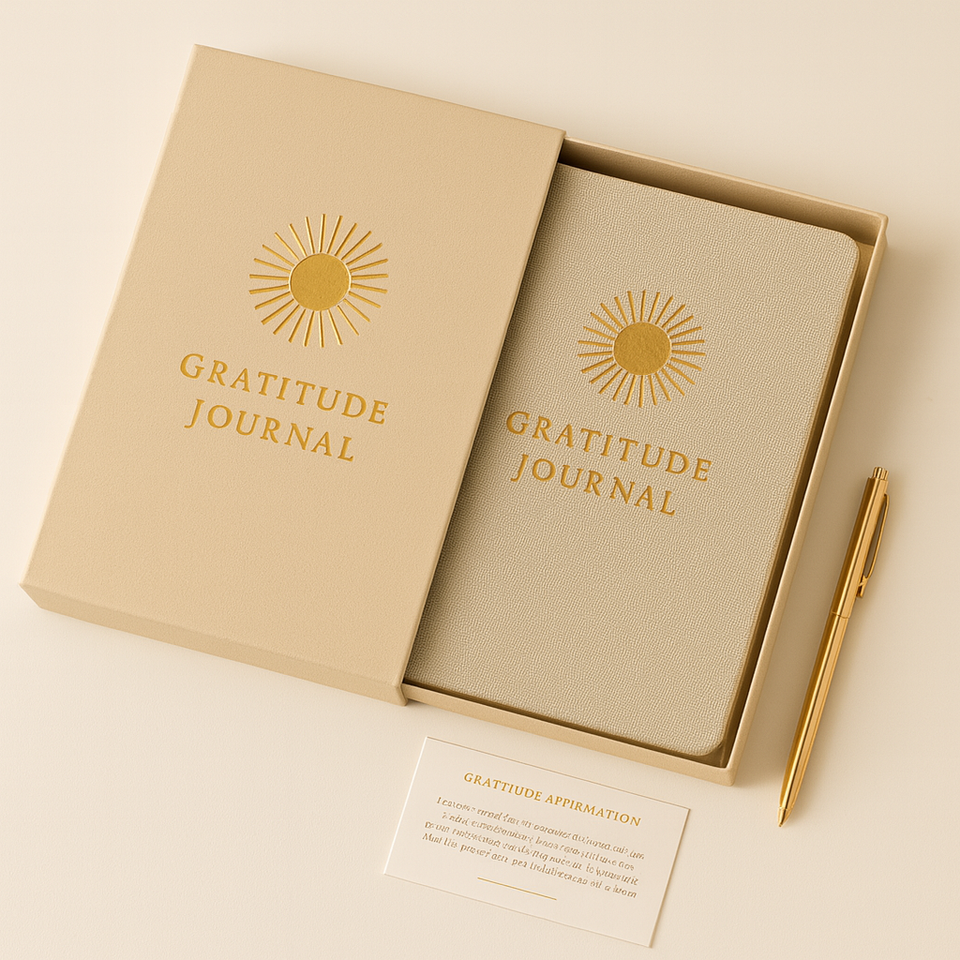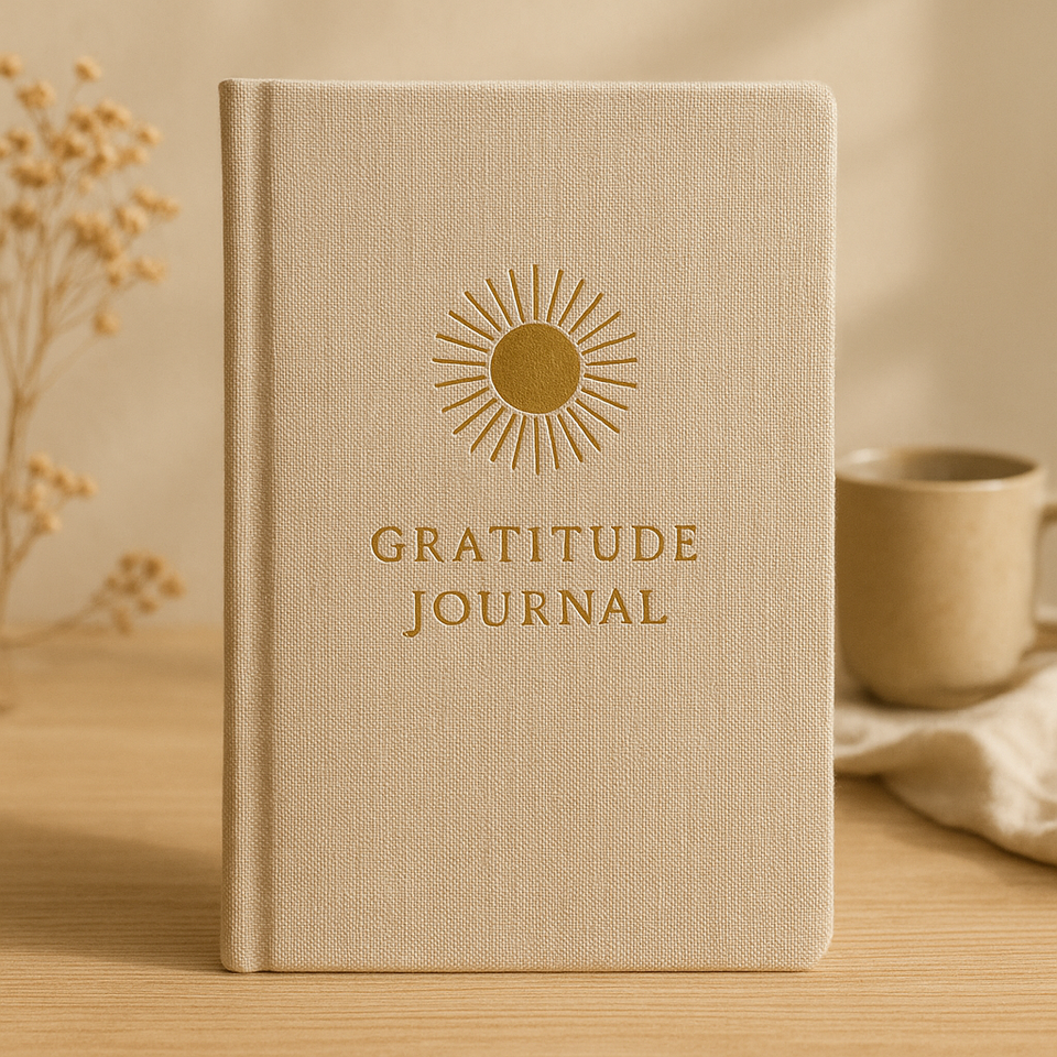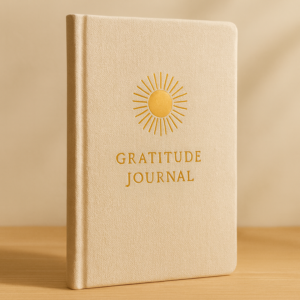 Journal de gratitude LABON, carnet de notes premium à couverture rigide, design soleil en feuille d'or pour la réflexion quotidienne, la pleine conscience et la pensée positive