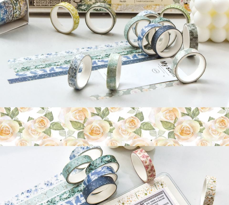 Ensemble de rubans Washi LABON PET, 5 rouleaux, ruban décoratif pour journal, motif floral, scrapbooking, planificateur, bricolage, ruban adhésif artisanal