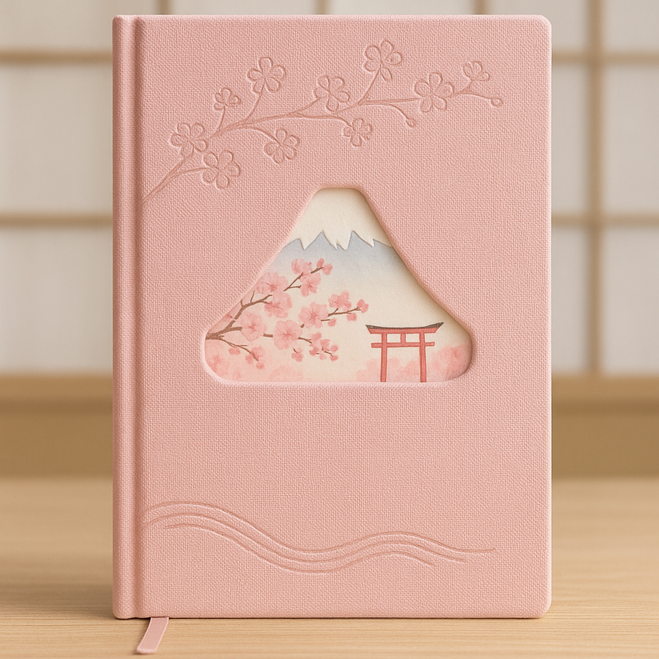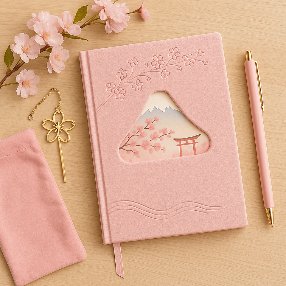 Carnet LABON Sakura Mont Fuji, couverture en PU rose, journal de style japonais, design découpé, fleurs de cerisier en relief, journal OEM