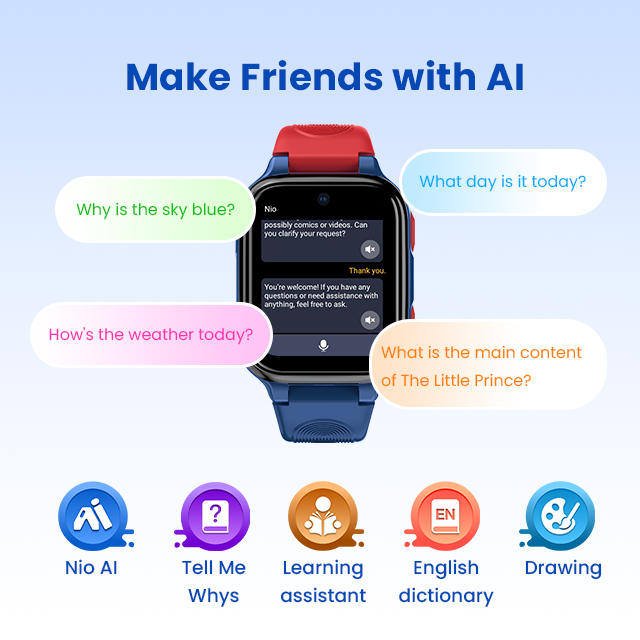 Montre connectée LAGENIO K9 pour enfants, mode classe, zone de sécurité, appel SOS, IP68, appel vidéo, apprendre à faire des amis, apprentissage IA, carte SIM
