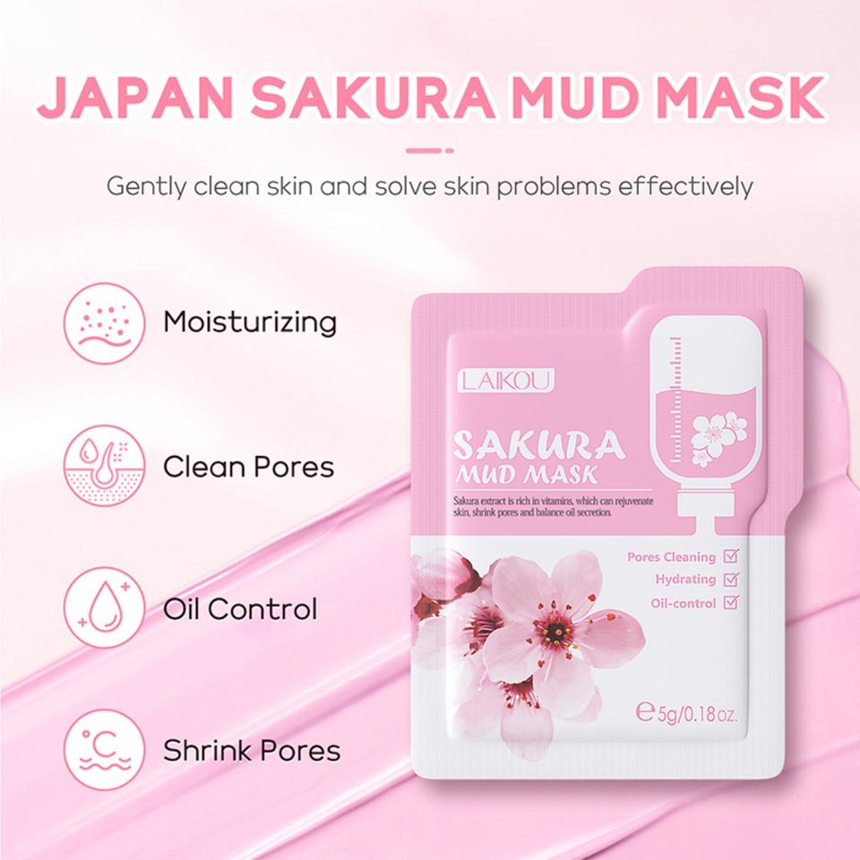 Masque à l'argile pour le soin de la peau du visage LAIKOU, marque privée, contrôle du sébum, nettoyage des pores, masque à la boue de Sakura du Japon