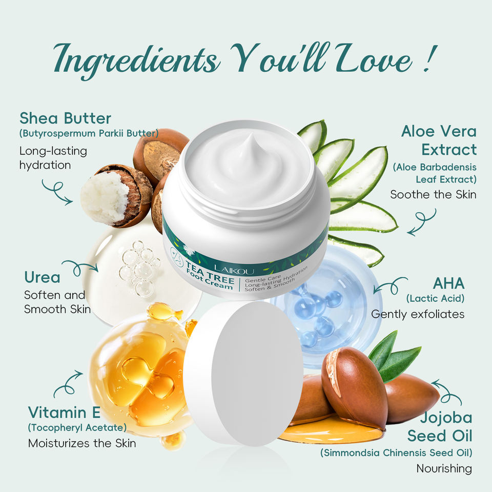 Crème pour les pieds à l'arbre à thé LAIKOU, soin rajeunissant des pieds, soin doux des pieds, peau rugueuse et craquelée, hydratation profonde, crème pour le corps, les jambes, les coudes, 60g
