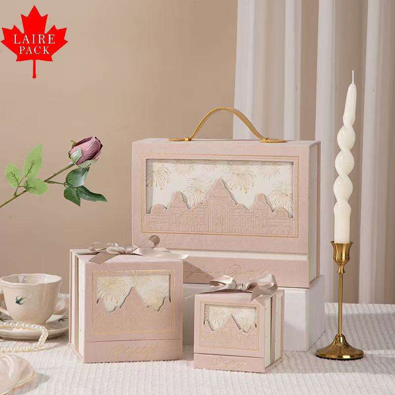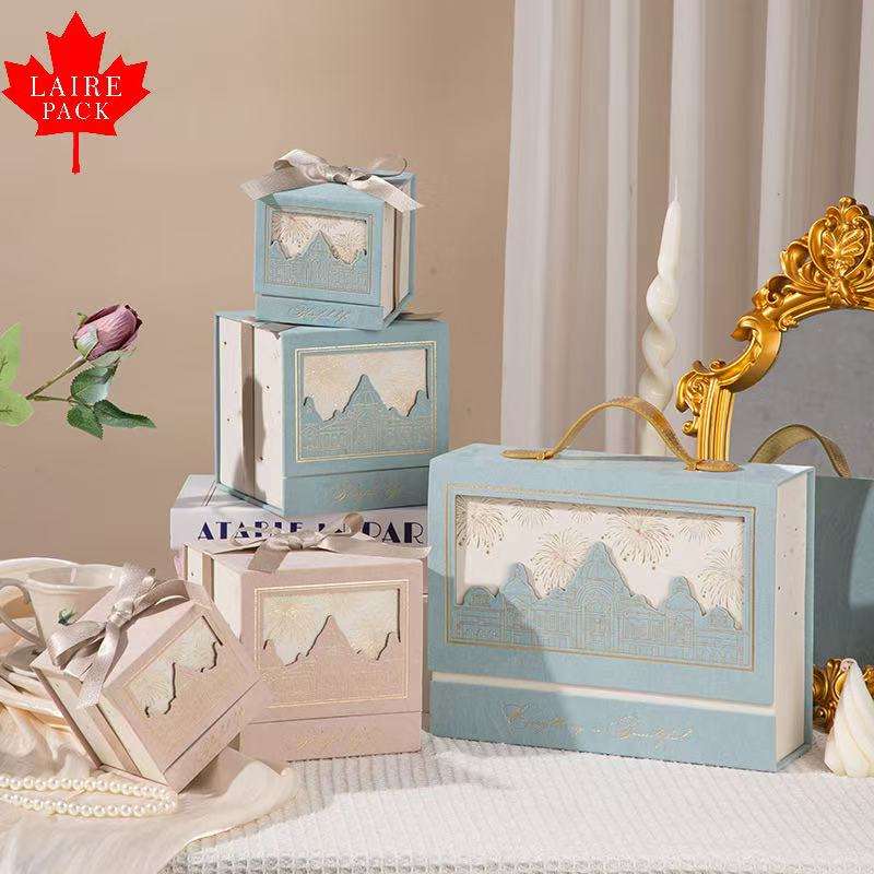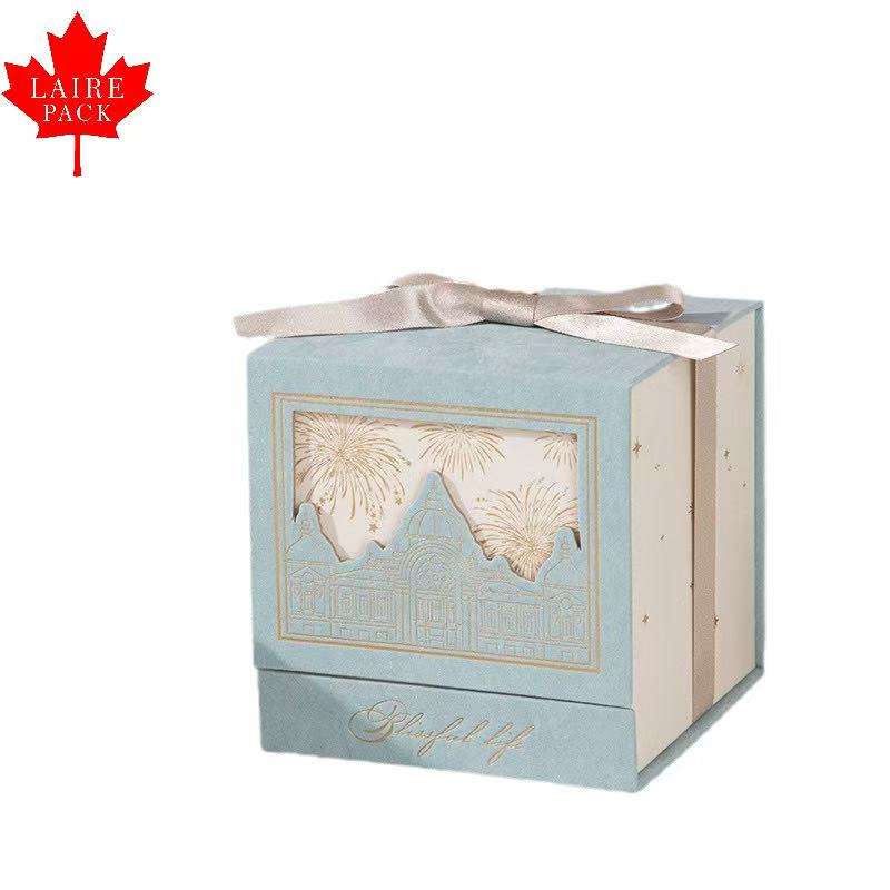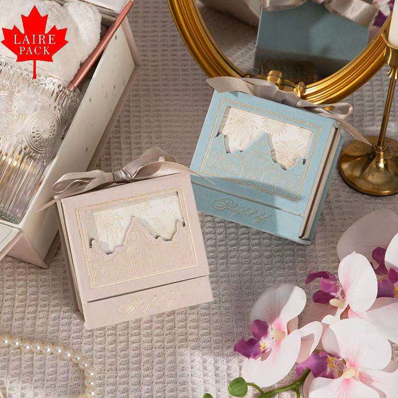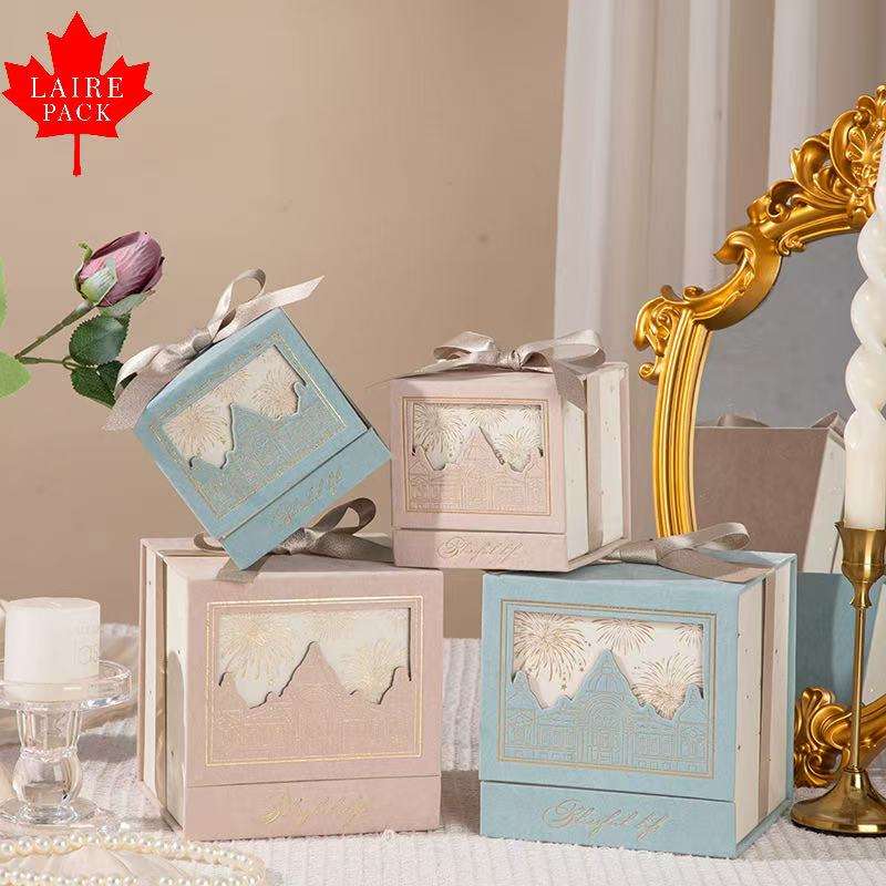 Boîte à bonbons de mariage de style château carré européen LAIRE, estampage dorée, banquet, boîte à bonbons à main, luxe léger, cadeau d'anniversaire exquis