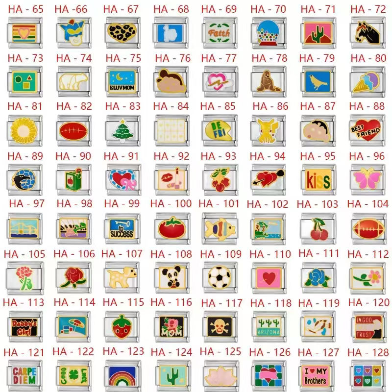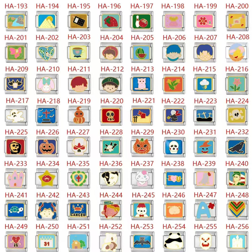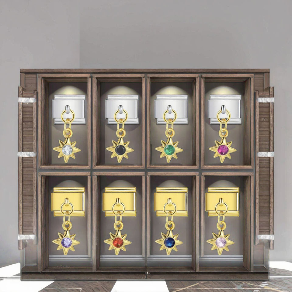 LAMOON Mignon Mini Étoile Perles Colorées CZ Pendentif Italien Charms Link pour Bracelet en Acier Inoxydable 9mm DIY Jewelry Fashionable
