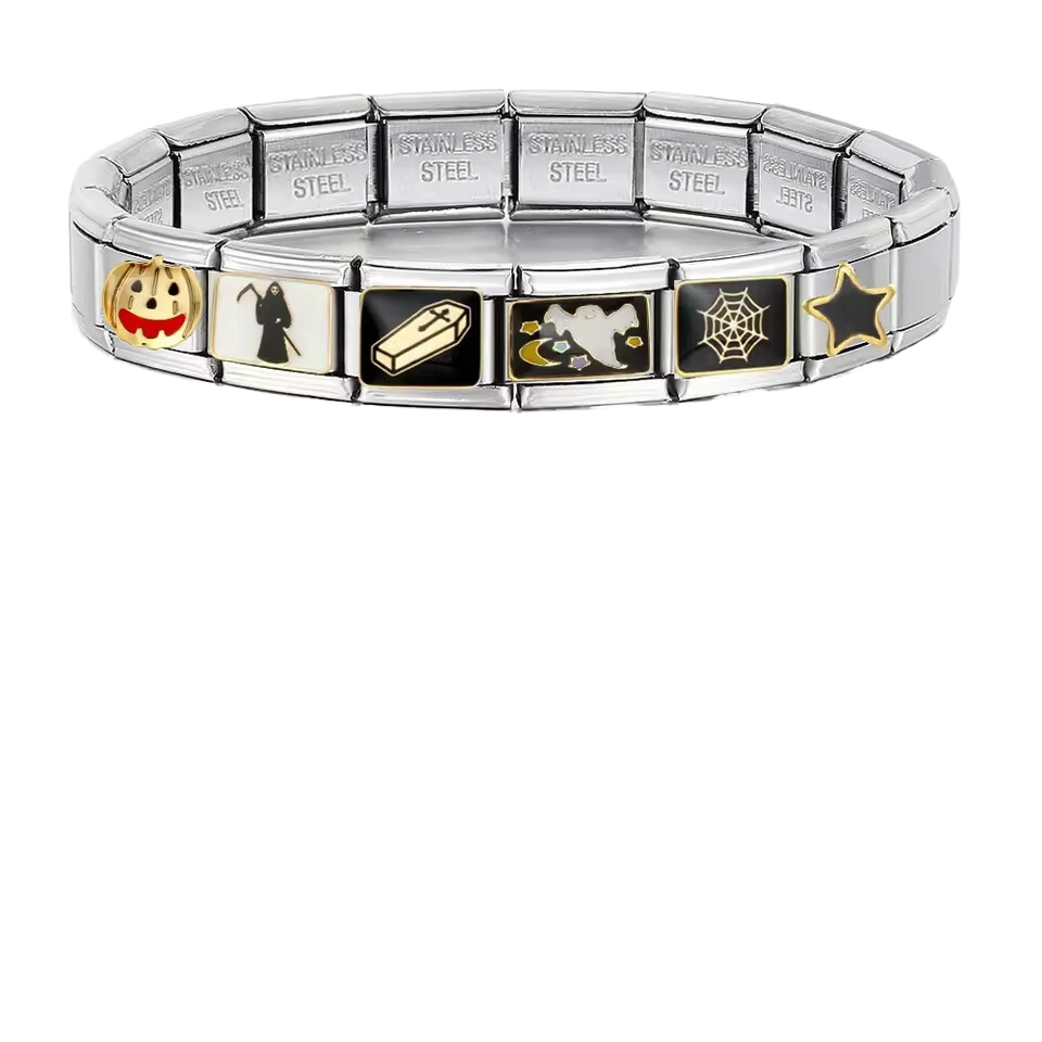 LAMOON Nouvelle Mode Italienne Charms Liens Halloween Noir Hibou Étoile Lune Chauve-Souris Fantôme pour Bracelets 9mm Fabrication Acier Inoxydable DIY