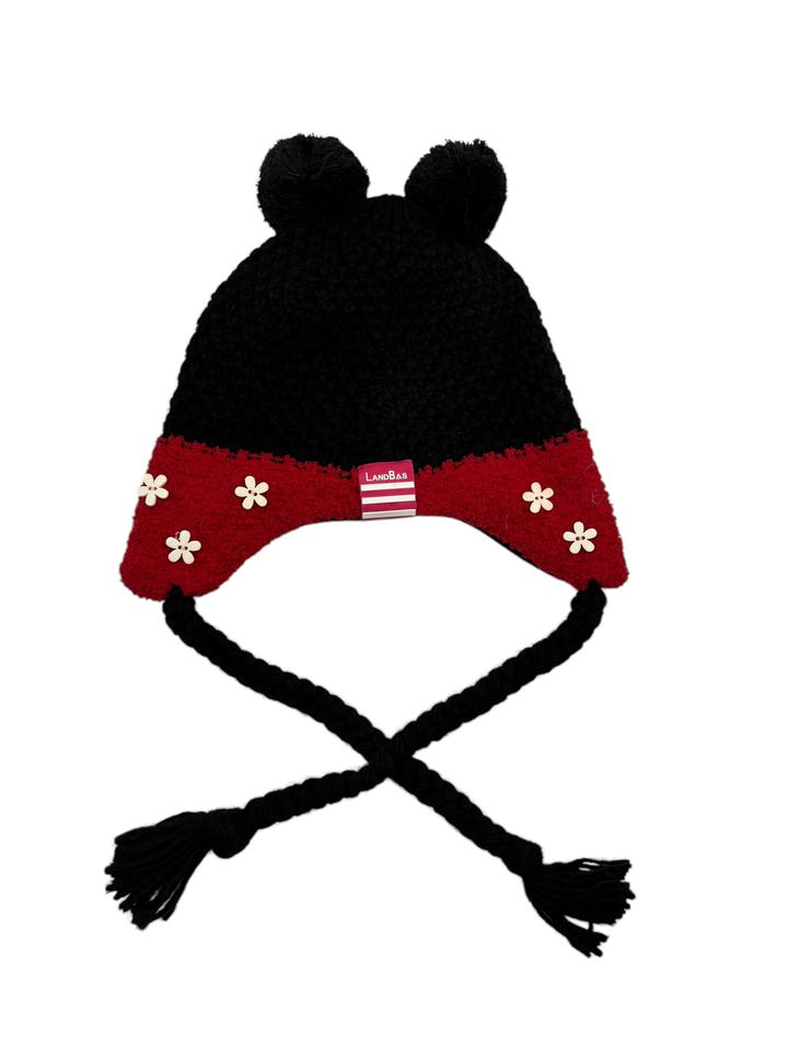 Bonnet d'hiver pour enfants et femmes LANDBAS de haute qualité, 54-56 cm, rouge, avec nœud, en tricot torsadé, 77 % acrylique, 23 % polyester