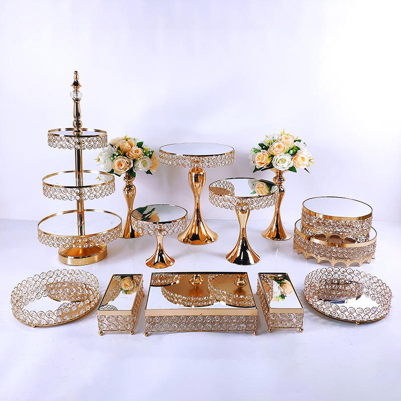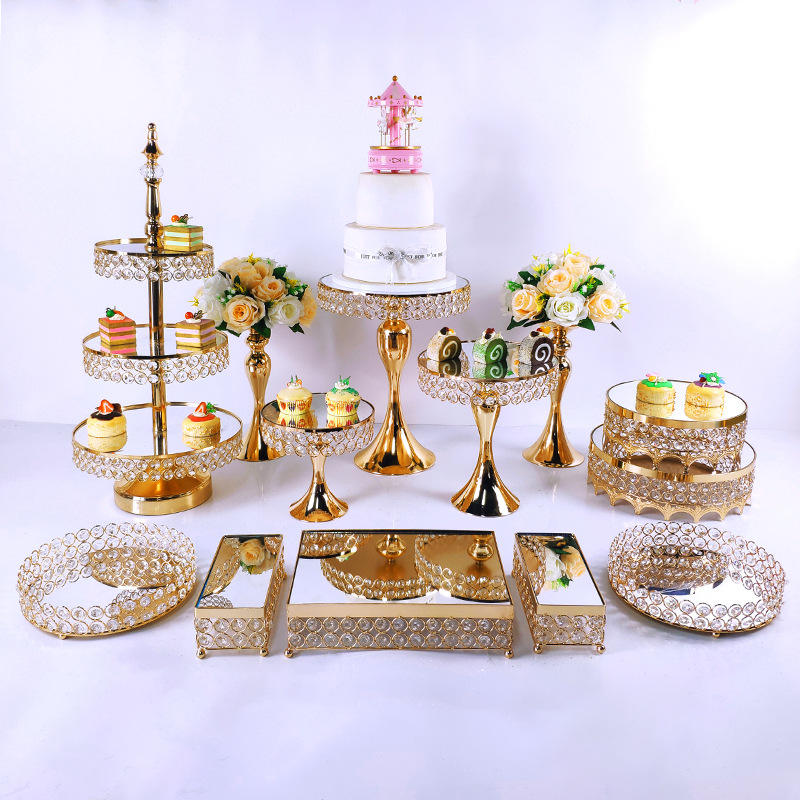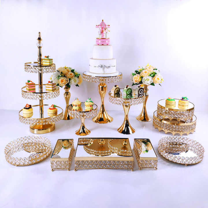 Ensemble de supports à gâteaux élégants en fer doré LANJO 5/8/10 pièces, supports et plateaux pour table de desserts pour mariage, anniversaire, fête du thé