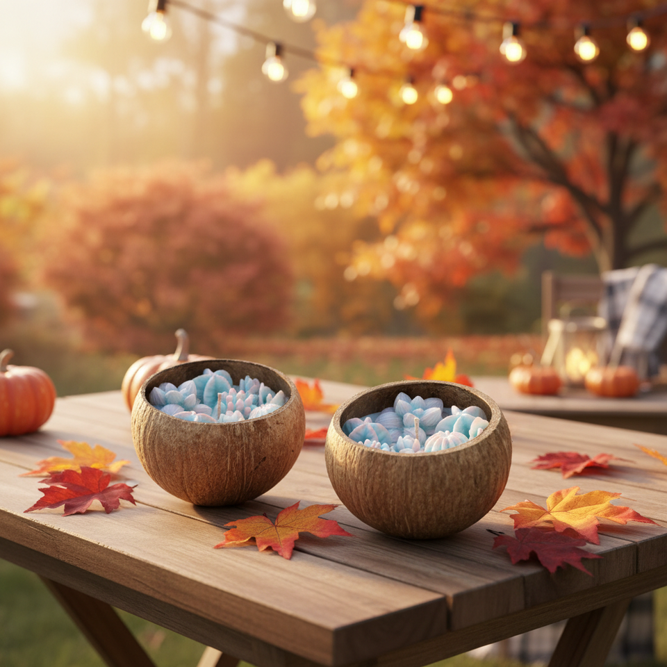 Bougie aromatique bio en forme de coquille de noix de coco LANJO pour l'automne, Thanksgiving, Diwali, les fêtes, les bars, en verre artisanal, décoration d'intérieur