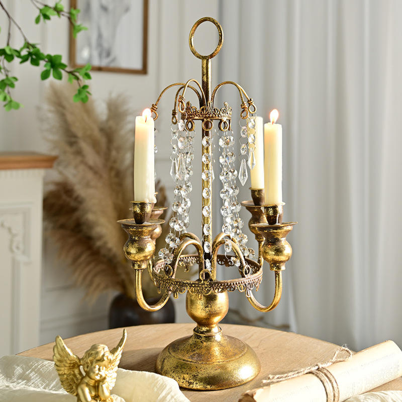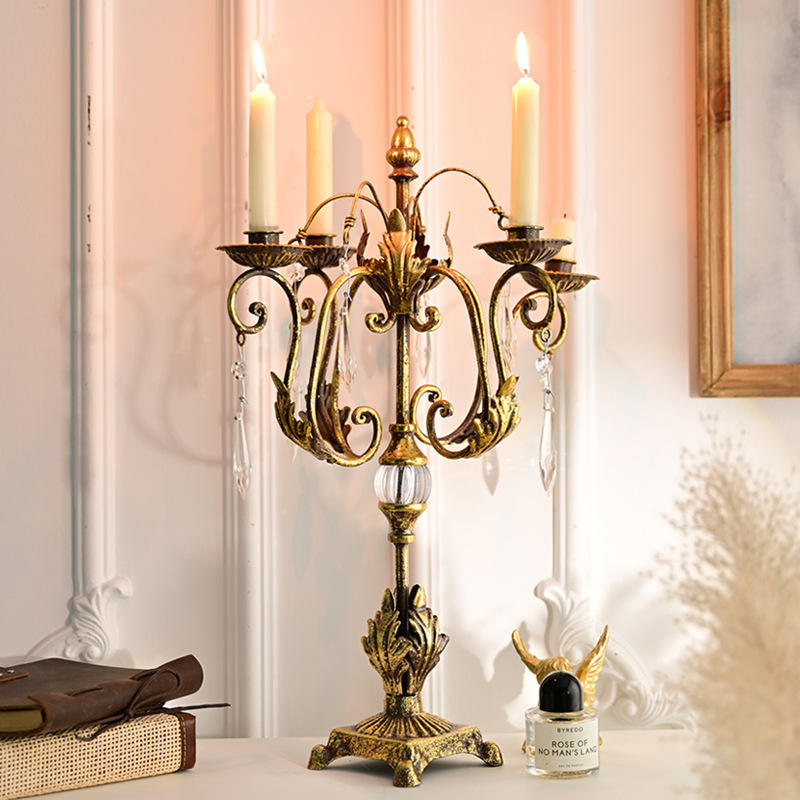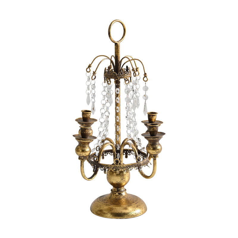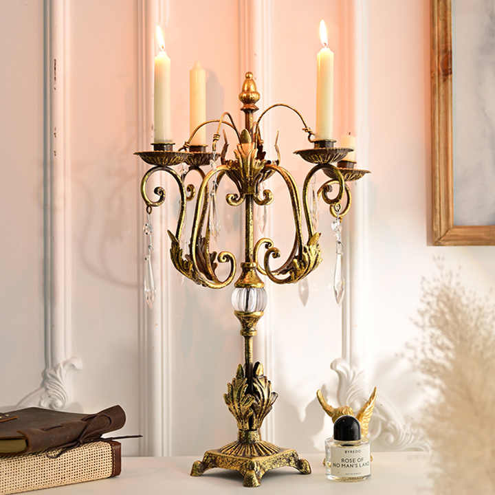 LANJO Porte-bougie en métal rétro de style européen à quatre têtes avec cristaux, lanternes à bougies créatives pour mariage