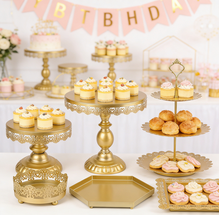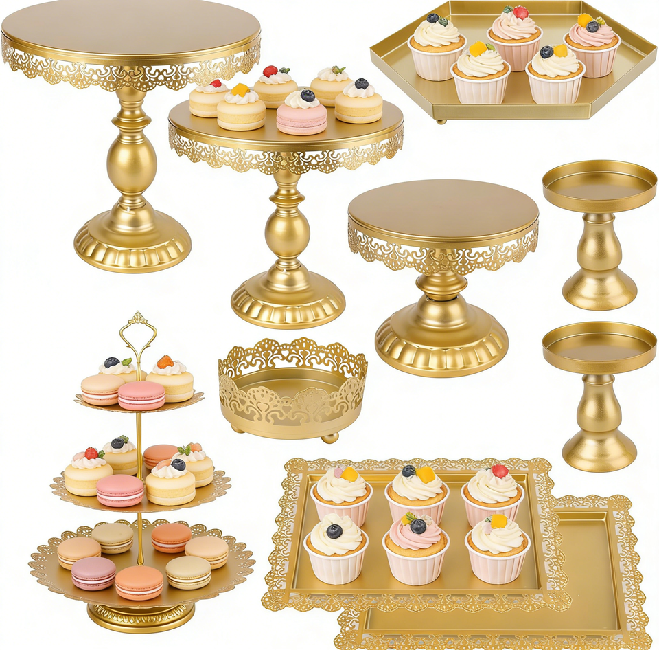 Support à gâteau détachable LANJO en fer doré, ensemble de présentation de desserts, support à cupcakes à plusieurs niveaux, plateau à fruits, bonbons, beignets, plateau de service en forme de tour