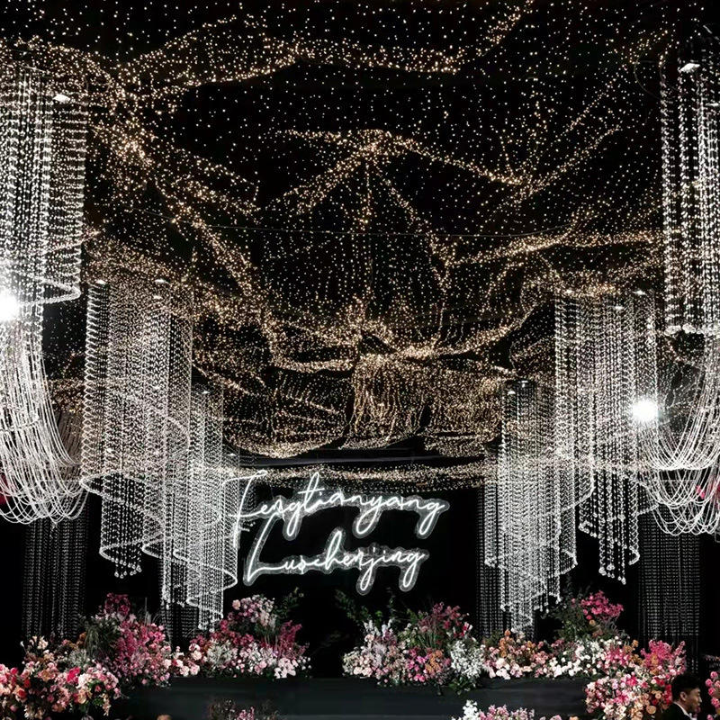 Rideau suspendu en PVC LANJO avec cristaux et perles, style ROMANTIQUE, forme circulaire, taille personnalisée pour les décorations de salle de mariage
