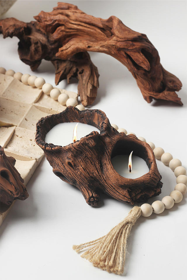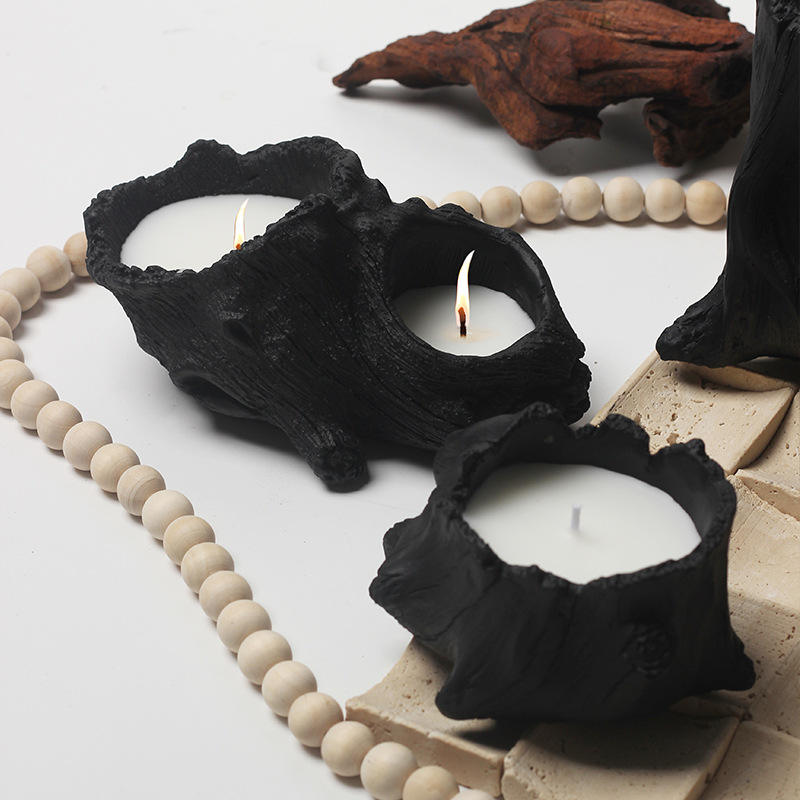 LANJO Vente en gros de pots à bougies en ciment et béton, style racine d'arbre, faits à la main, artistiques, rustiques, pour la décoration de la maison, imprimés UV