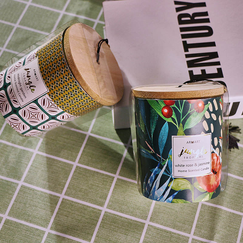 LANJO Vente en gros de bougies parfumées en cire de soja naturelle et biologique, sans fumée, dans un bocal en verre avec couvercle en bois, faites à la main, pour Thanksgiving et Noël, avec étiquette personnalisée
