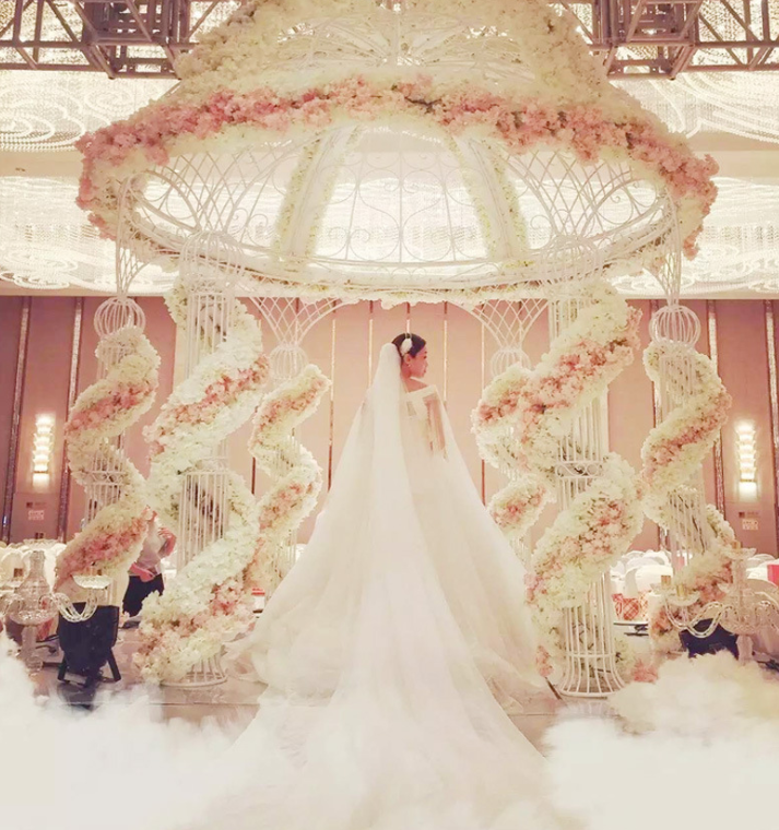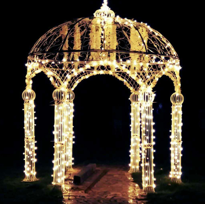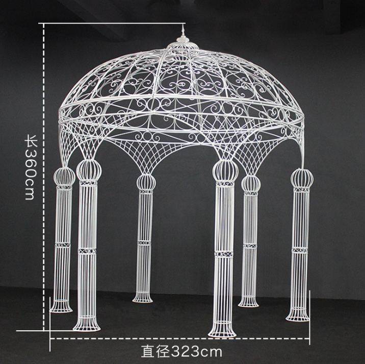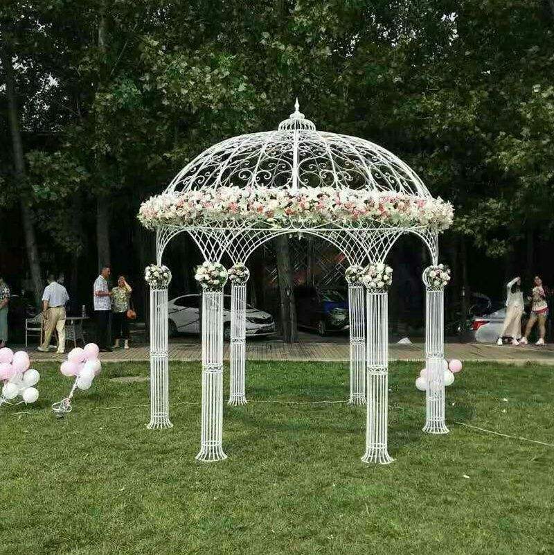 Pavillon de mariage rond à 6 piliers en fer forgé LANJO, tente de cérémonie extérieure, arche florale pour événements