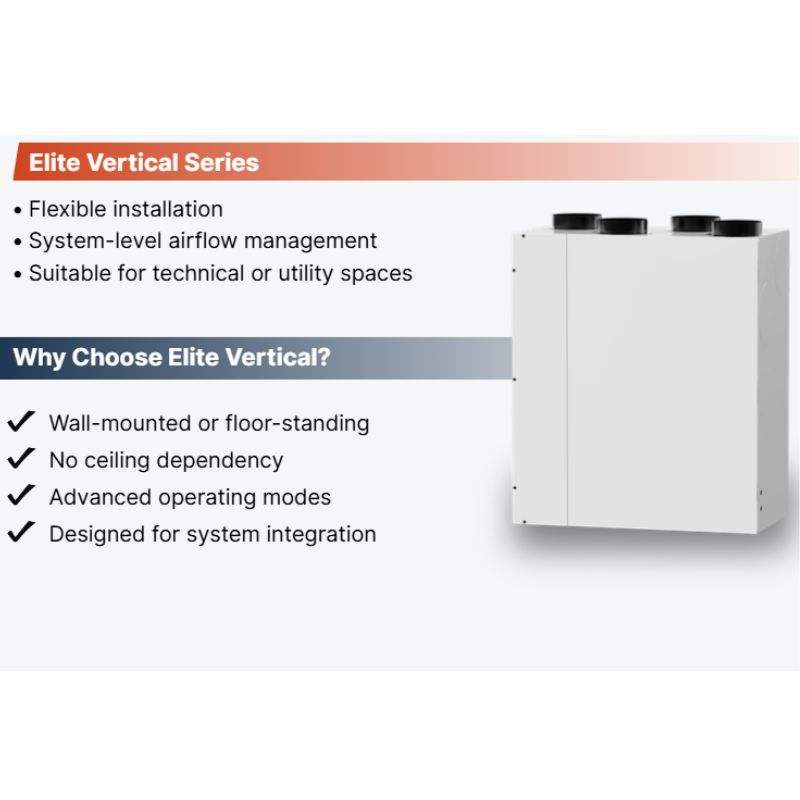 Système de ventilation à récupération de chaleur LANSTEP MVHR avec moteur EC, montage vertical pour la ventilation résidentielle