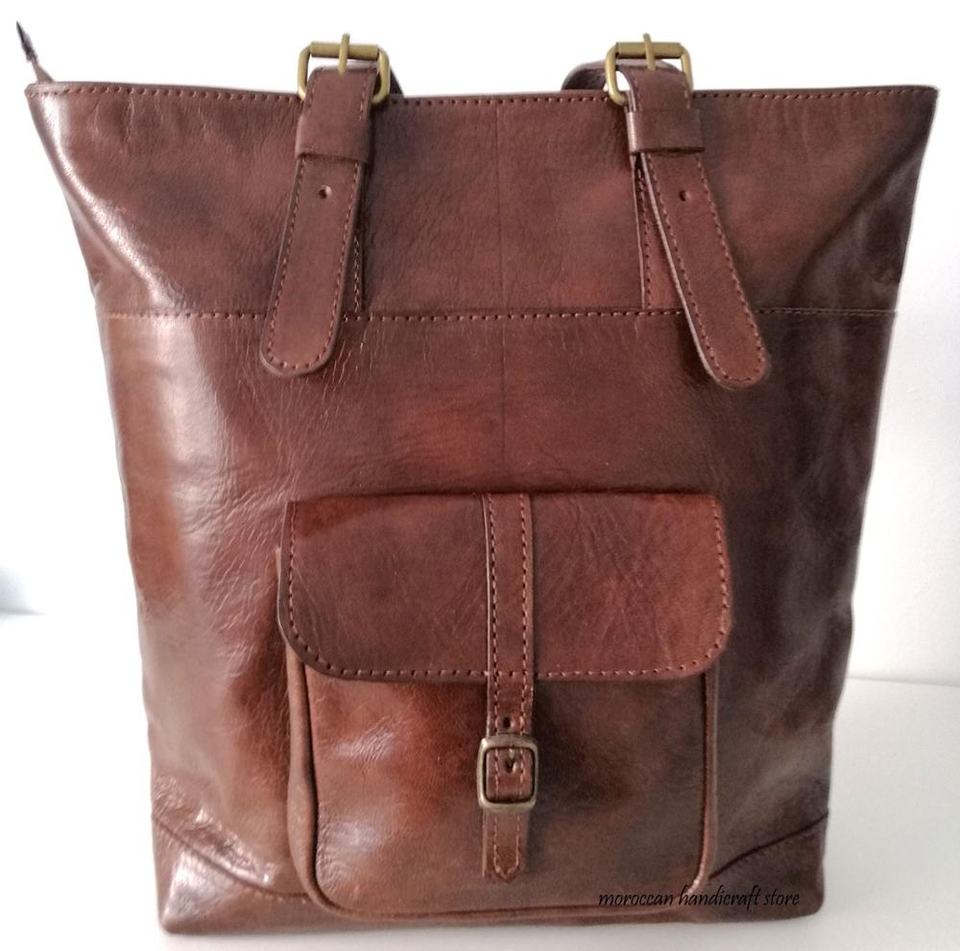 LARGE GENUINE LEATHER Clutch Brown Bohemian Handbag for Women Soft Cover Closure Everyday Bag