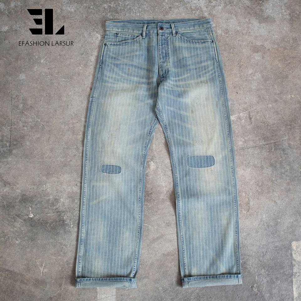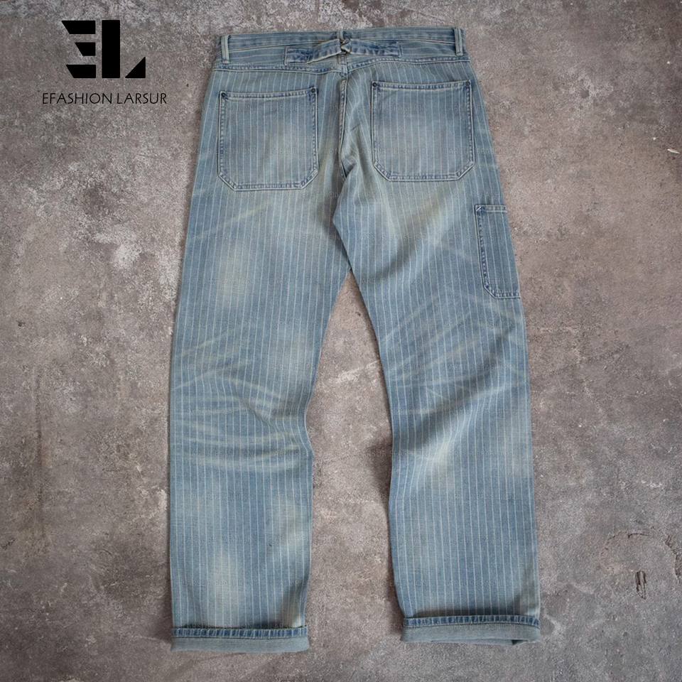 LARSUR Pantalon en denim à rayures indigo personnalisé d'usine en détresse délavé Jean automobile Wabash Railway Railroad pour hommes