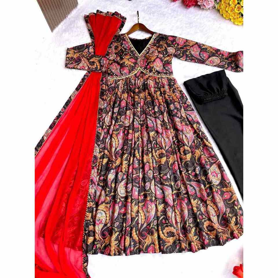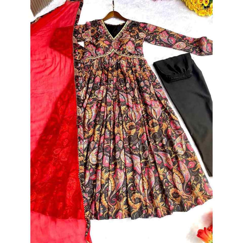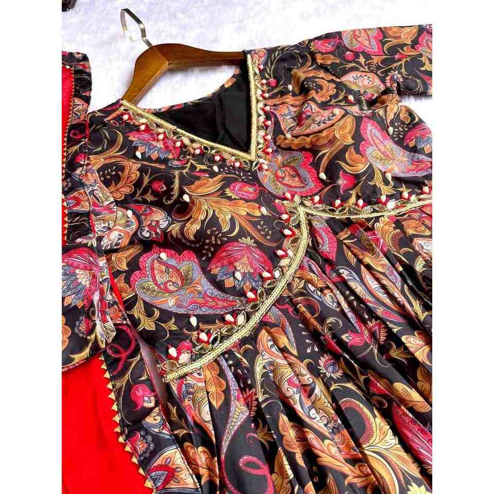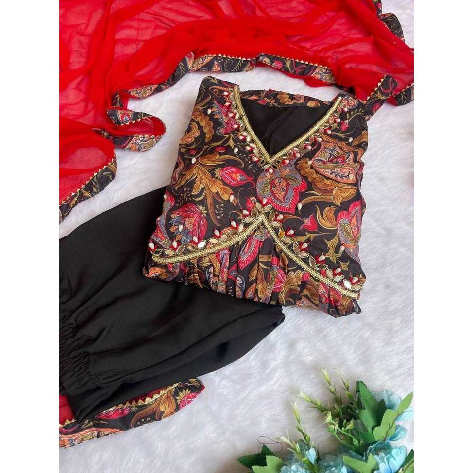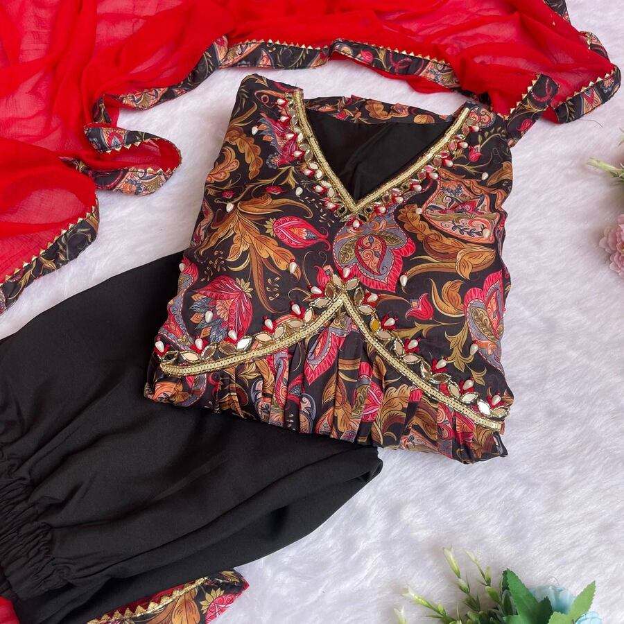 LATEST COTTON DIGITAL PRINT WORK ALIA CUT KURTI BOTTOM WITH DUPATTA BLACK