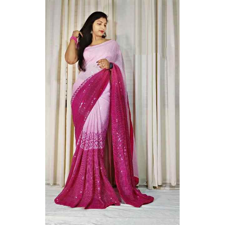 DERNIÈRE GEORGETTE DIGITAL IMPRIMÉ SÉQUENCE TRAVAIL SAREE AVEC BLOUSE NON COUCHÉE ROSE