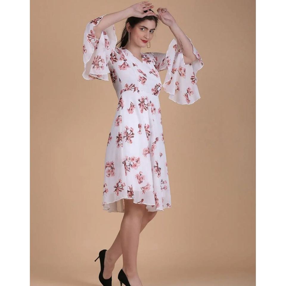 DERNIÈRE GEORGETTE IMPRIMÉE MANCHES FANTAISIE UNE PIÈCE BLANC
