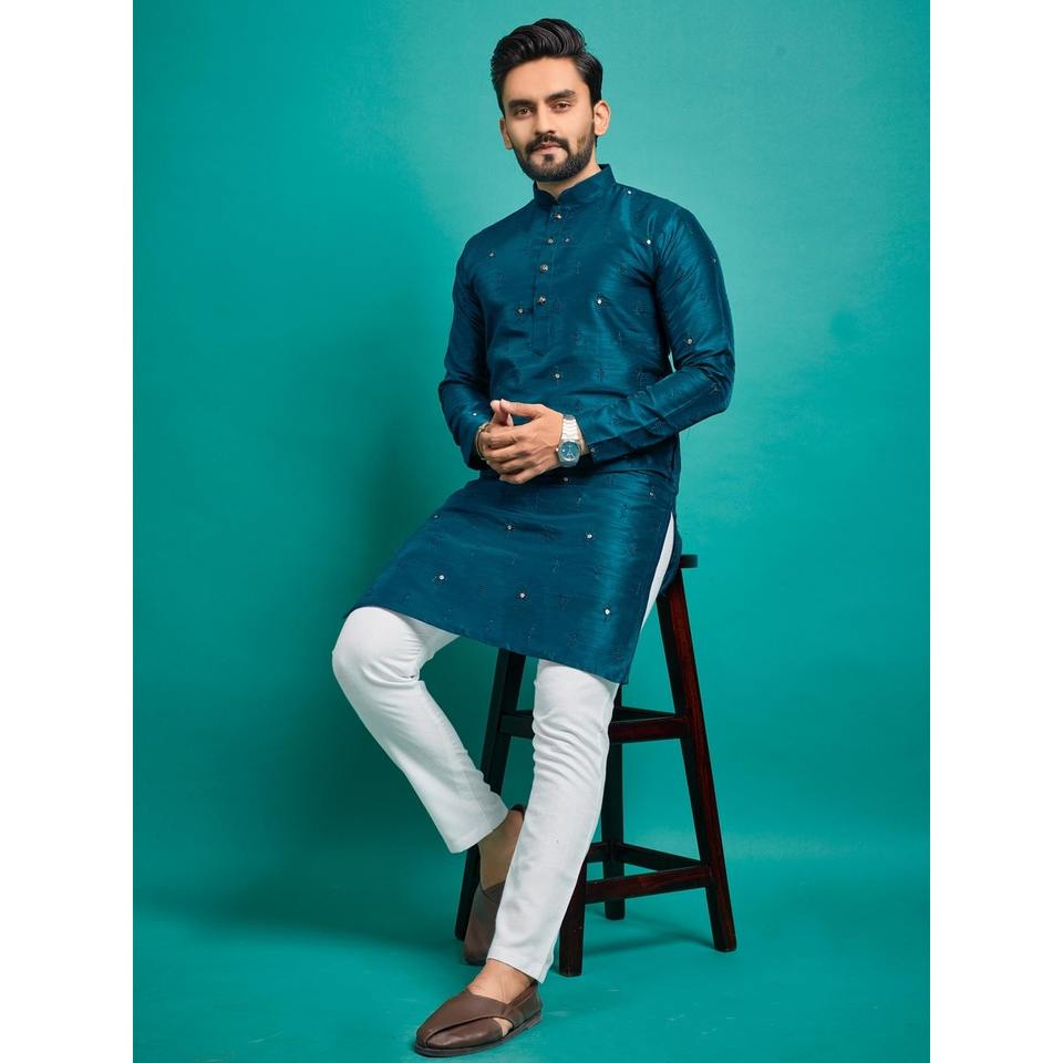 DERNIÈRE PARBON FIL DE SOIE TRAVAIL HOMME KURTA AVEC PYJAMA RAMA