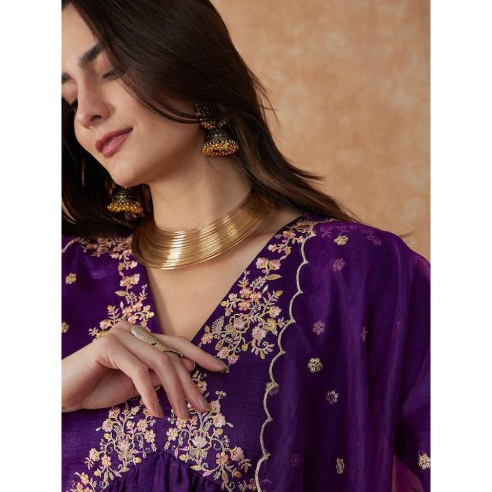 LATEST VICHITRA SILK EMBROIDERY SEQUENCE WORK ALIA CUT KURTI BOTTOM WITH DUPATTA RED