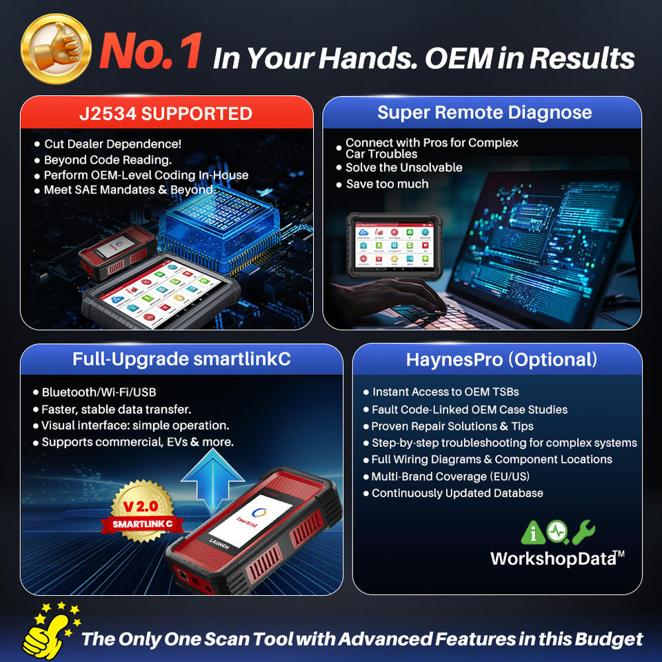 LAUNCH X431 PRO3S+ Elite V+ PRO avec SmartLinkC 2.0 2026 Outil de diagnostic et de codage ECU bidirectionnel
