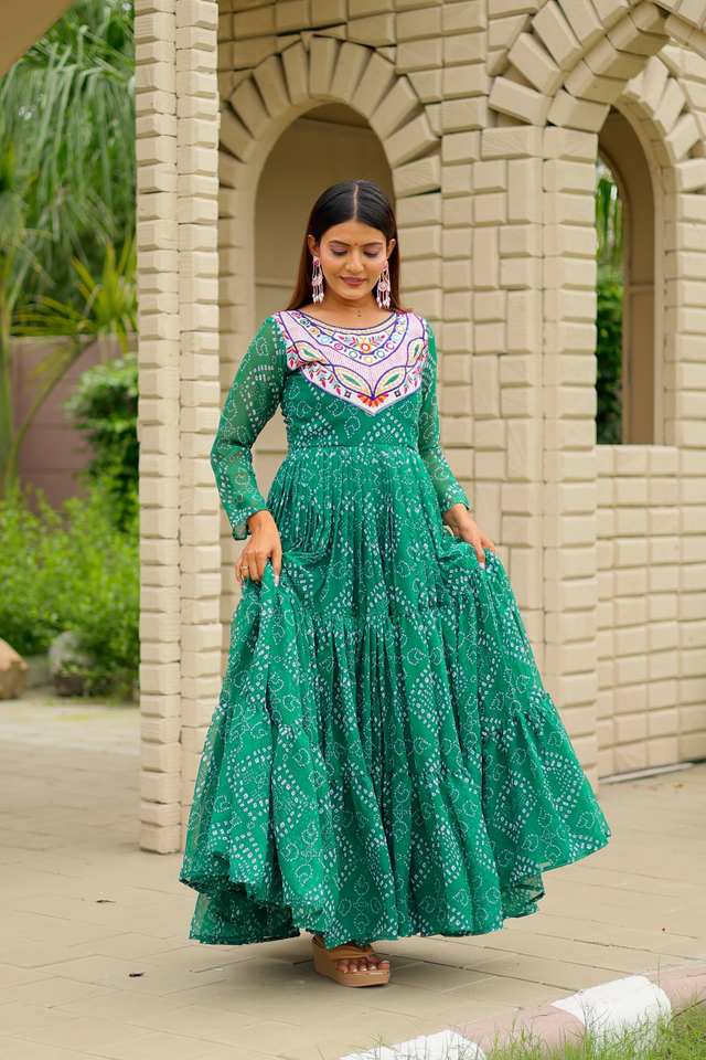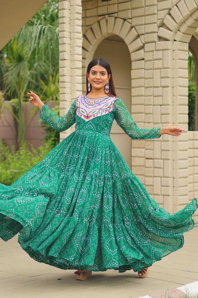 LANCEMENT DE LA NOUVELLE ROBE SPÉCIALE NAVRATRI TISSU FAUX GEORGETTE AVEC BRODERIE ET VÉRITABLE MIROIR