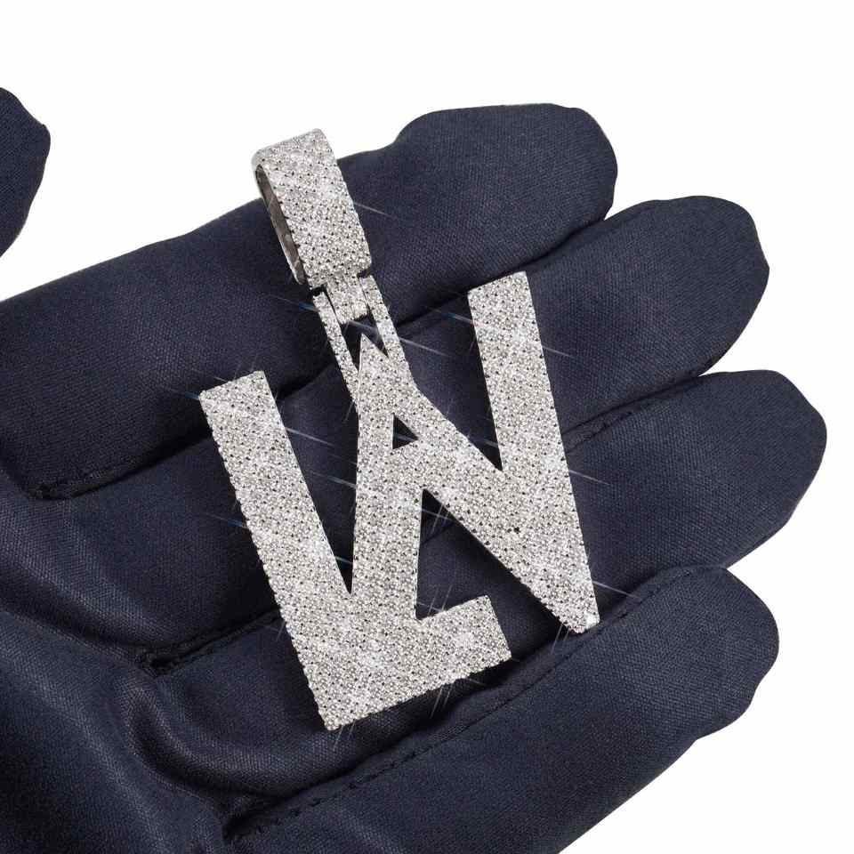 Pendentif personnalisé LAV avec finition or 14 carats, charme personnalisé en moissanite VVS taille brillant rond pour unisexe, à porter au quotidien