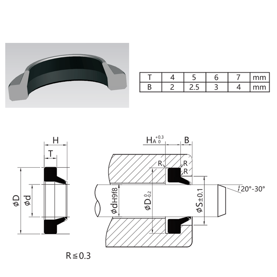Joint d'étanchéité hydraulique double lèvre en J LBH pour grattoir anti-poussière, taille personnalisée, plage de température -30~+100°C