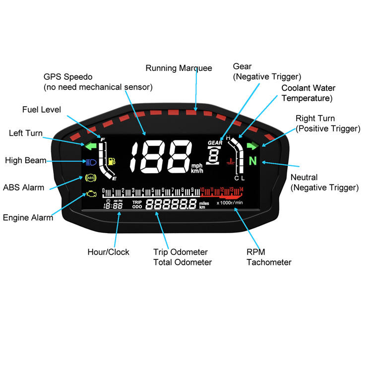 LCD Digital Universal Motorcycle Odometer Speedometer Tachometer with No Mechanical Sensor Get GPS Signal From Satellite