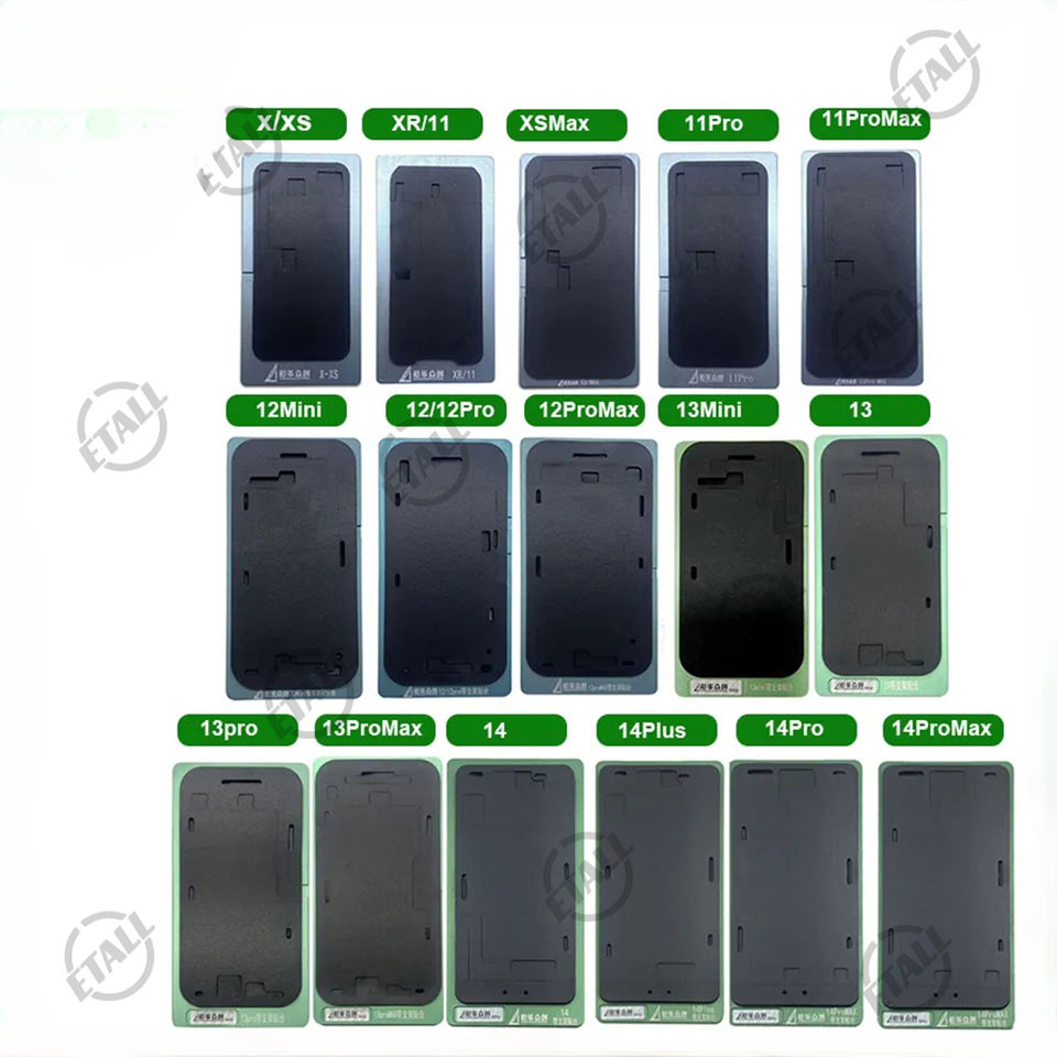 Moule de plastification LCD en silicone noir avec cadre pour iPhone 8 à 16 Pro Max Outils de réparation d'écran LCD